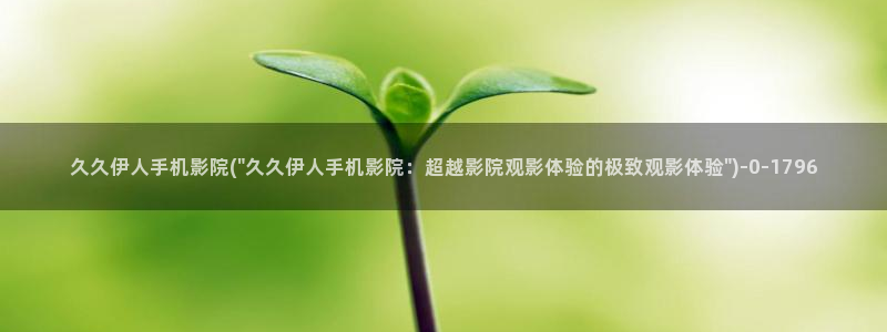 伊人在线官网视频播放:久久伊人手机影院(\"久久伊人手机影院:超越影院观影体验的极致观影体验\")